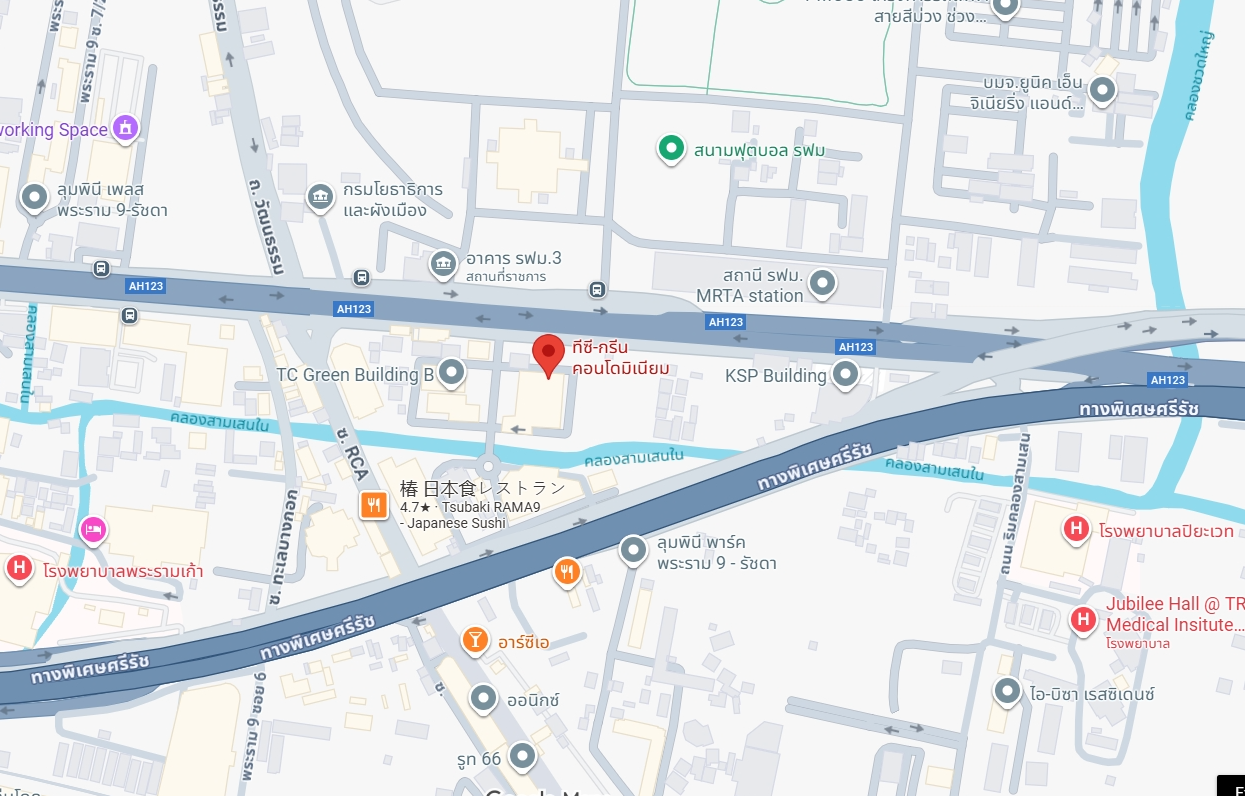 รวมคอนโด ซื้อ ขาย ให้เช่า TC Green Rama 9 (ทีซี กรีน พระราม 9) ที่อยู่ ถ. พระราม 9 แขวงห้วยขวาง เขตห้วยขวาง กรุงเทพมหานคร คอนโดใกล้รถไฟฟ้าสายสีส้ม รฟม และ รถไฟฟ้าสายสีน้ำเงิน MRT พระราม 9 ใกล้ โรงพยาบาลปิยะเวท RCA