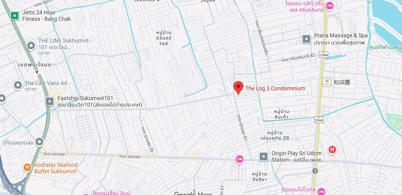 รวมคอนโด ซื้อ ขาย ให้เช่า The Log 3 (เดอะ ลอค 3) ที่อยู่ ถนน สุขุมวิท 101/1 แขวงบางจาก เขตพระโขนง กรุงเทพมหานคร คอนโดใกล้รถไฟฟ้าสายสีเหลือง BTS สวนหลวง ร.9 รถไฟฟ้า BTS ปุณณวิถี ใกล้ห้าง ซีคอนสแควร์ ศรีนครินทร์ พาราไดซ์ เพลส